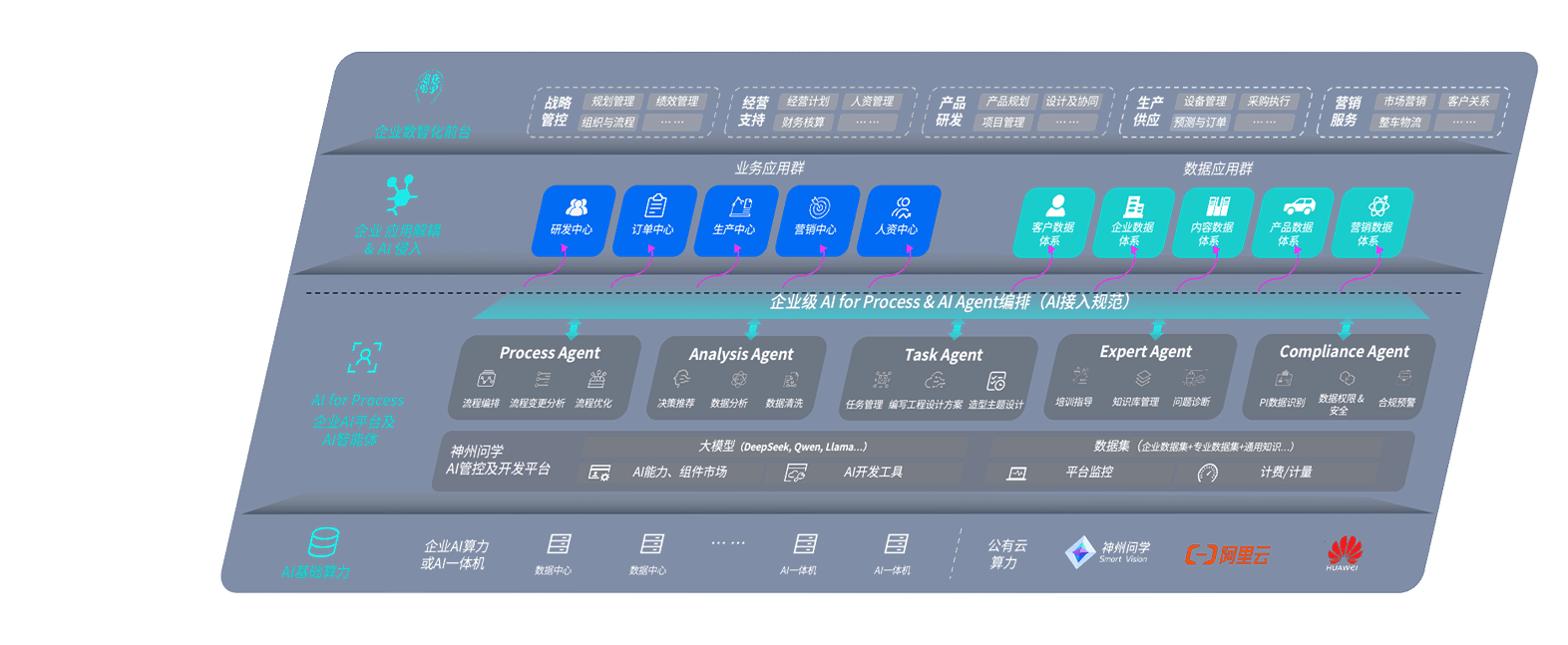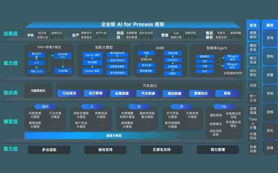 端到端的一站式AI工作空间深度融合了从企业战略规划到日常经营的全流程业务板块,,,定向解决车企内部领域多、、、、部门多、、链条长、、场景碎片化等难题,,支持车企快速构建以AI为核心的生产力写作体系,,,,实现任务执行与AI能力的无缝集成与交互